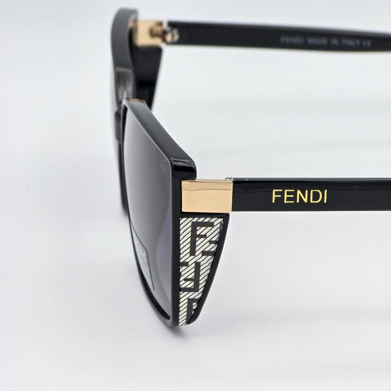 - لوگوی طلایی روی دسته: نام برند FENDI با فونت طلایی و کلاسیک روی دستههای مشکی حک شده است.