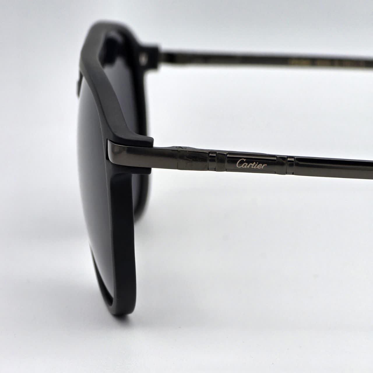 این عینک آفتابی شاهکاری از تلفیق “قدرت” و “ظرافت” است. برند Cartier در این مدل، با ترکیب فریم جلویی کائوچویی به رنگ مشکی مات و دستههای فلزی صیقلی، تضادی خیرهکننده ایجاد کرده است. این عینک برای آقایانی طراحی شده که استایلهای مدرن و تکنیکال را میپسندند و به دنبال عینکی هستند که هم با تیپ اسپرت و هم با استایل رسمی (بیزنس کژوال) هماهنگ باشد.