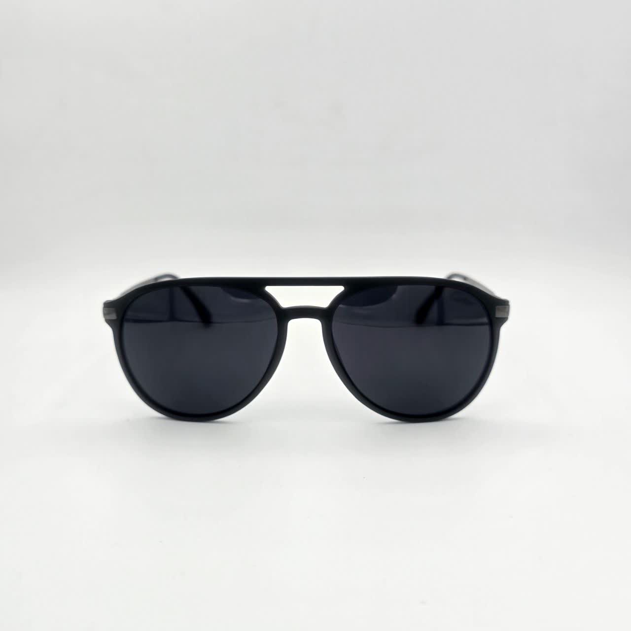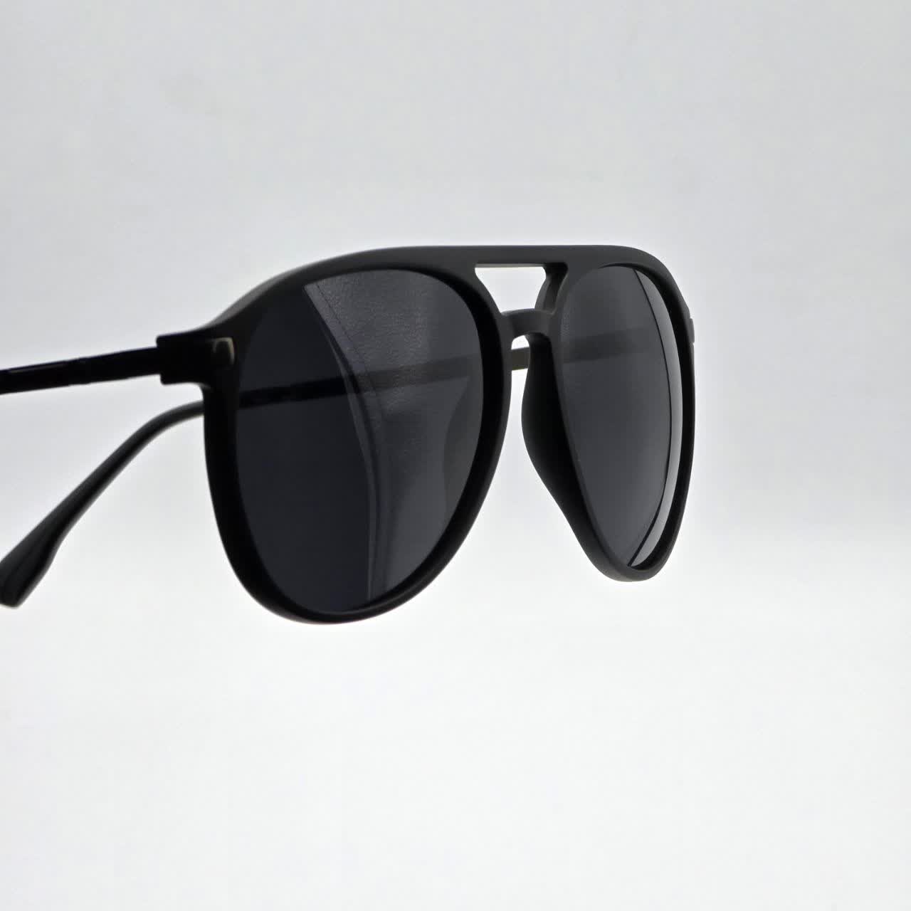 - فریم جلو: از جنس استات (Acetate) یا کائوچوی فشرده با فینیشینگ مشکی مات (Matte Black) ساخته شده است. این بافت مات، حسی مخملی و مدرن دارد و برخلاف فریمهای براق، خط و خش ریز را نشان نمیدهد.